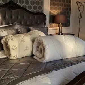 Lâna merino de calitate superioară stă la baza fiecărui produs din colecția noastră. Fibrele fine merino sunt recunoscute pentru termoreglarea naturală (țin căldură iarna și răcoare vara), respirabilitate și capacitatea de a gestiona umiditatea, menținând un confort uscat pe tot parcursul nopții. În mod natural antistatică și cu tendință redusă de a reține mirosuri, lâna merino oferă un somn liniștit și sănătos.